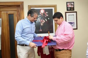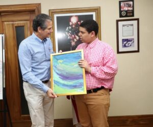 Como parte del reconocimiento, Villanueva recibió una obra de Fernando Gabriel, gesto que agradeció con palabras de aprecio y estímulo.