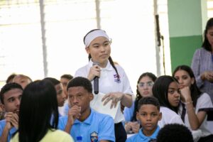 Además, presentó el voluntariado estudiantil “Dominicanos al 100”, orientado a promover ciudadanía, liderazgo y valores, e invitó a los jóvenes a participar en debates, modelo de Naciones Unidas, olimpíadas académicas y programas de robótica y tecnología.