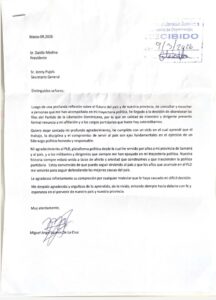 En su carga de renuncia, Miguel Angel Jazmín agradece al PLD y a  los militantes de esa entidad  que lo apoyaron en su trayectoria política